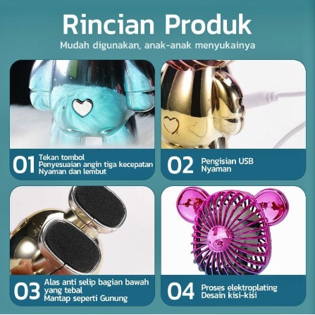Kelebihan - Kelebihan membeli Kipas Angin Mini Portable Beruang Chrome Kipas Tangan Meja BearBreak di Toko ini