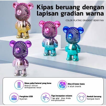 Kipas Angin Mini Portable Beruang Chrome Kipas Tangan Meja BearBreak