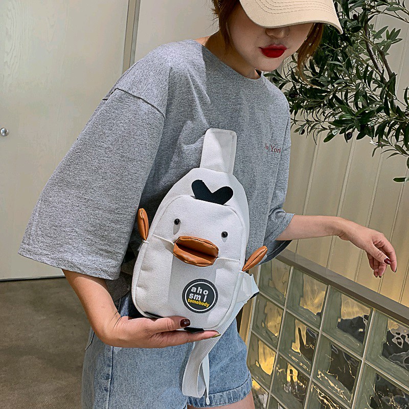 Tas Selempang Wanita Motif Bebek Duck Kanvas Korea Style