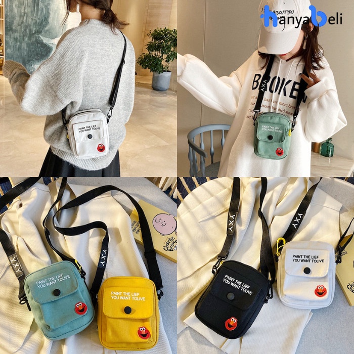 Post a Comment for "Elmo Tas Selempang Wanita Korea Kanvas Sling Bag Mini Import"