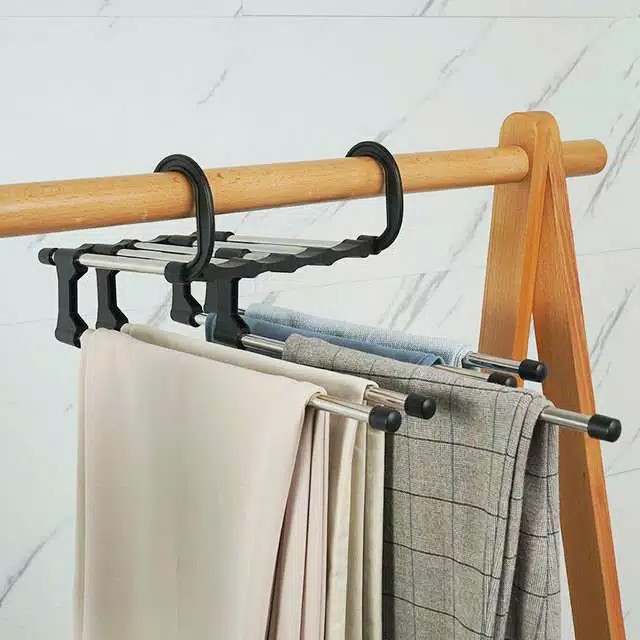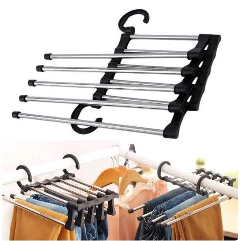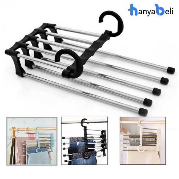 Magic Hanger 5 In 1 Stainless Gantungan Baju Celana Jilbab Syal Pakaian