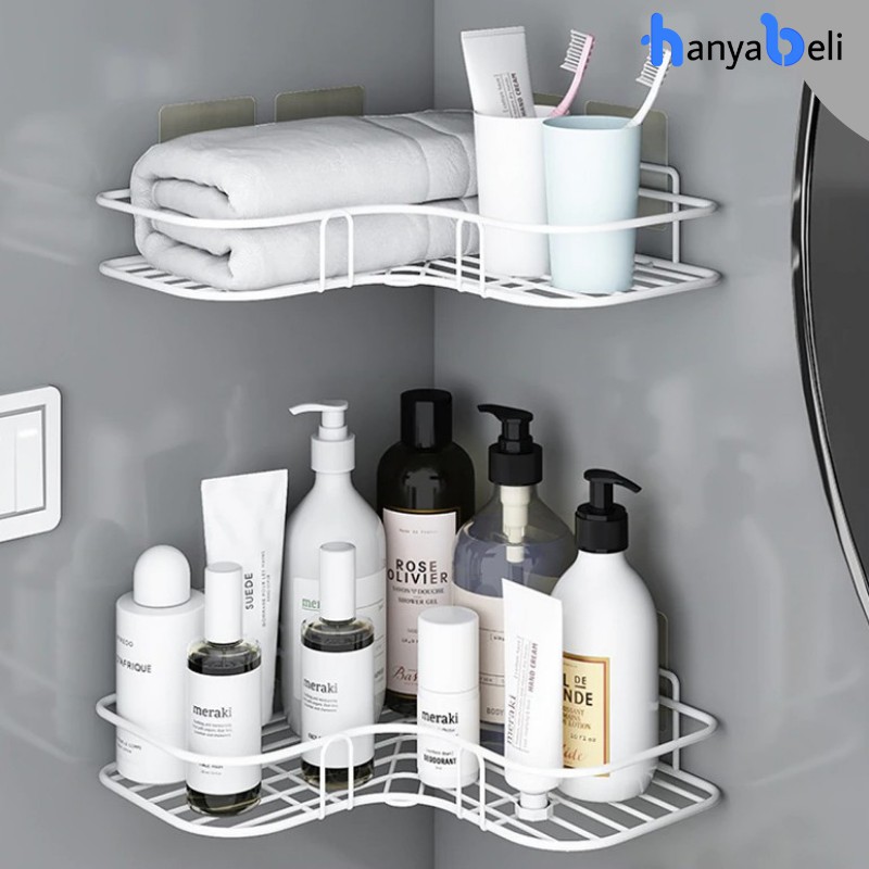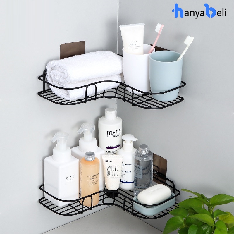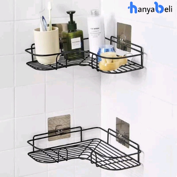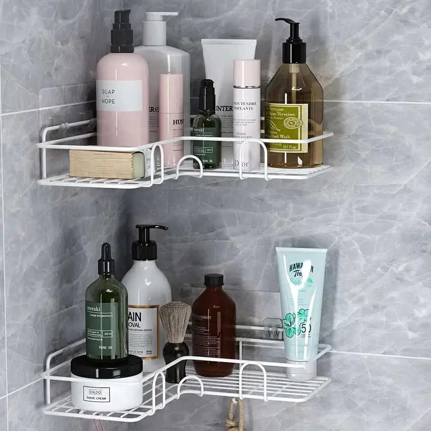 Rak Sudut Kamar Mandi Tempel Dinding Keramik Rak Dapur Besi Serbaguna Tanpa Paku
