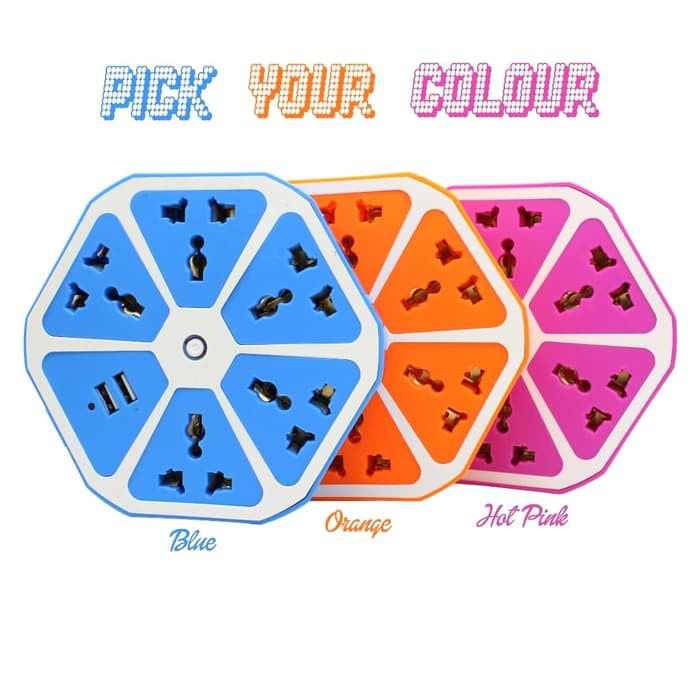 Stop Kontak Hexagon 2 Usb Port Kabel Roll Colokan Jeruk Smart Power