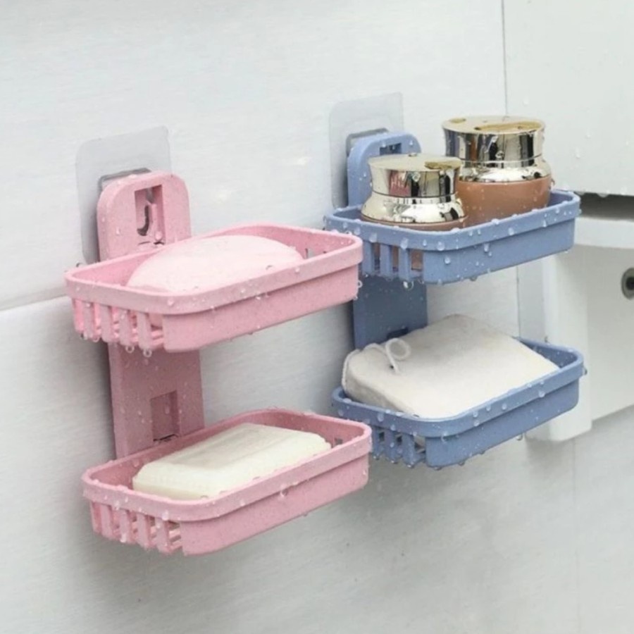 Tempat Sabun Batang Tempel 2 Tingkat Rak Kotak Sabun Kamar Mandi Soap Holder