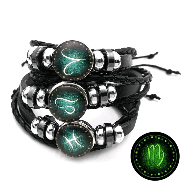 Gelang Zodiak Kulit Pria Wanita Aksesoris Fashion Glow In The Dark Gelang Couple